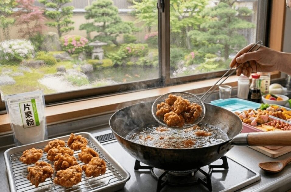 冷めた唐揚げがべちゃっとしてしまう悩みは、調理法で解決できます。秘訣は「二度揚げ」と「衣の配合」。まず160℃の低温でじっくり火を通し、一度引き出して数分休ませた後、180℃の高温で30秒サッと揚げ直します。こうすることで表面の水分がしっかり飛び、冷めてもカリッとした食感が続くんです。